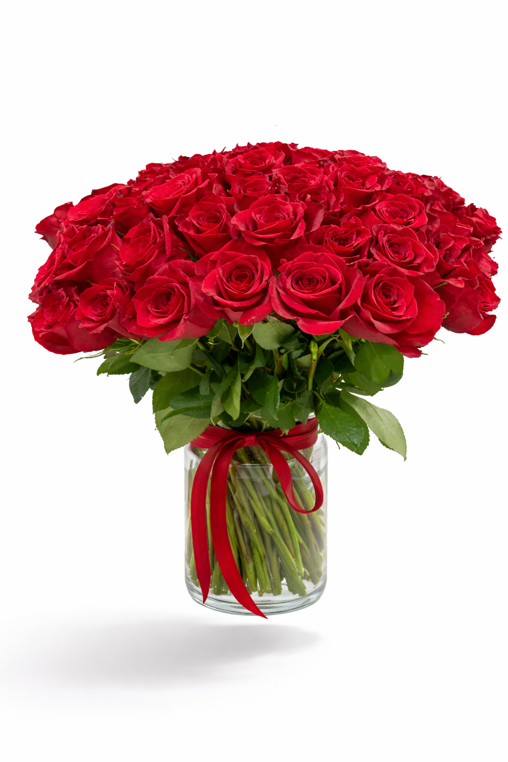 Ramo de 151 rosas rojas premium en jarrón de cristal